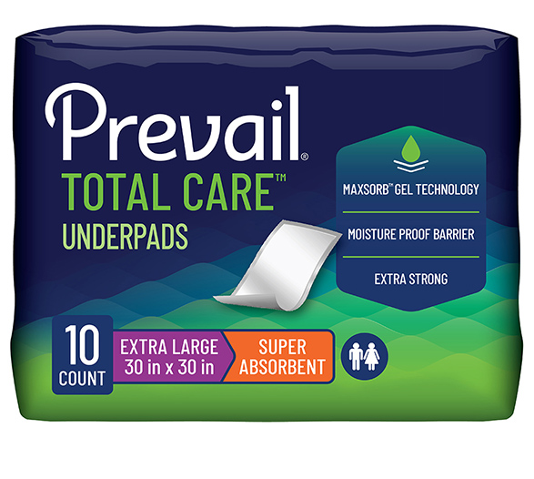 Prevail® Underpads provide reliable and comfortable protection that helps keep beds, linens, chairs and other surfaces dry and clean. They are soft, absorbent and durable even when wet. Features include: 1) Total Care Super Absorbent Underpads feature MaxSorb Gel ™ Technology that quickly pulls and locks up liquid 2) Waterproof Barrier for effective protection 3) Extra strong construction